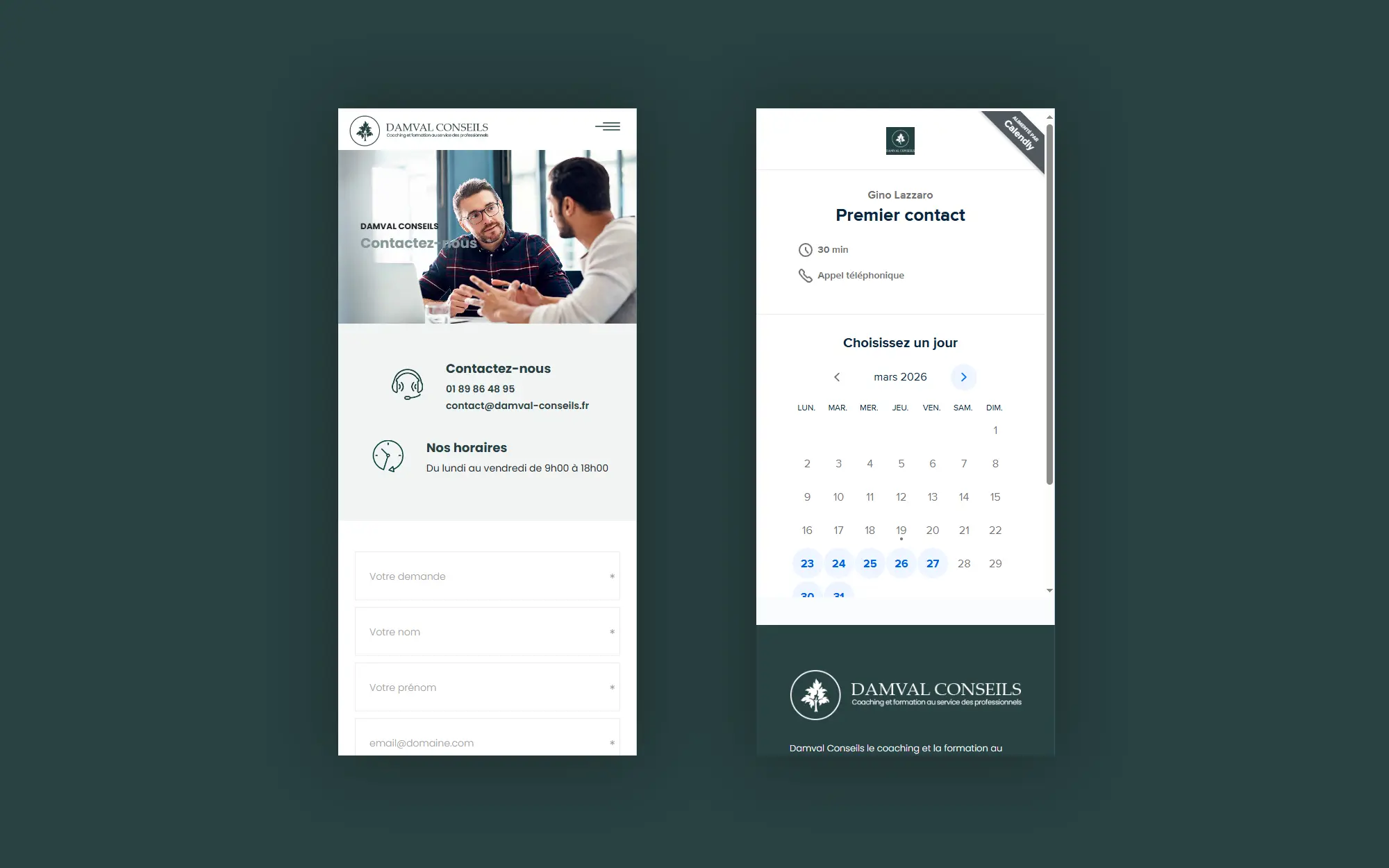 Damval Conseils accompagne dirigeants, managers et équipes dans leur développement professionnel. Leur positionnement haut de gamme nécessitait une présence digitale cohérente avec leur niveau d’exigence.Nous avons conçu un site internet professionnel orienté conversion, capable d’inspirer confiance dès les premières secondes et de structurer clairement les offres. L’objectif était de faciliter la prise de contact avec une cible B2B qualifiée et d’améliorer la visibilité sur les recherches liées à la formation et au coaching.